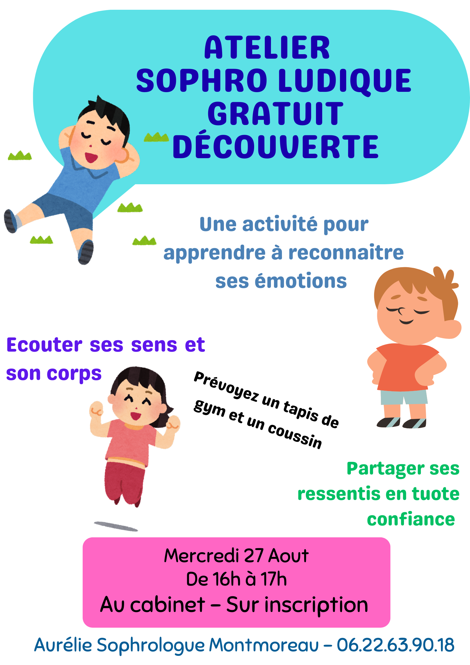 Atelier Sophro Ludique Gratuit pour les Enfants dès 5 ans À l’occasion de la rentrée scolaire, j’ai le plaisir d’offrir un atelier découverte de Sophro Ludique aux enfant
