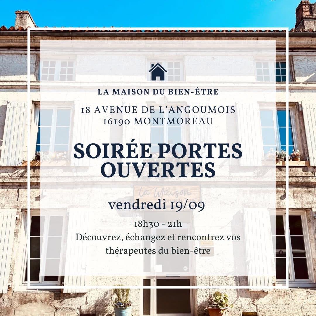 ✨ Soirée Portes Ouvertes – La Maison du Bien-Être ✨ 📅 Vendredi 19 septembre – de 18h30 à 21h 📍 18 avenue de l’Angoumois, Montmoreau 🎟️ Gratuit – Entrée l